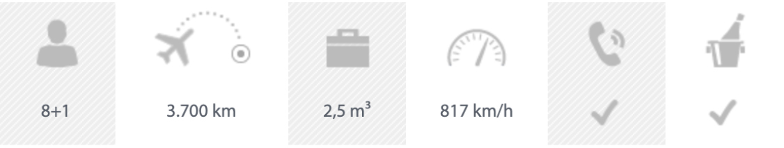 Die Citation XLS+ kann bis zu neun Passagiere befördern. Besonderheiten: Satellitentelefon und WiFi an Bord. Die Citation XLS+ hat für ihre Verhältnisse einen großen Gepäckraum für mehrere Koffer und Taschen plus zusätzlichem Sportgepäck.